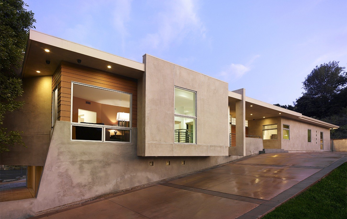 Linear architecture, exposed steel beams, and floor-to-ceiling windows craft an ultra-modern dream home in the hills of Covina, CA. The house is open and light and engages with its natural hilltop setting. The project consisted of demolishing nearly the entire existing home built in 1978 to create a new home that has an open floor plan with a large kitchen and family room. The HartmanBaldwin design build team needed to work through challenges in structurally achieving the complex details in the design, such as the exposed structural steel, curved structural walls, and large-span window walls.